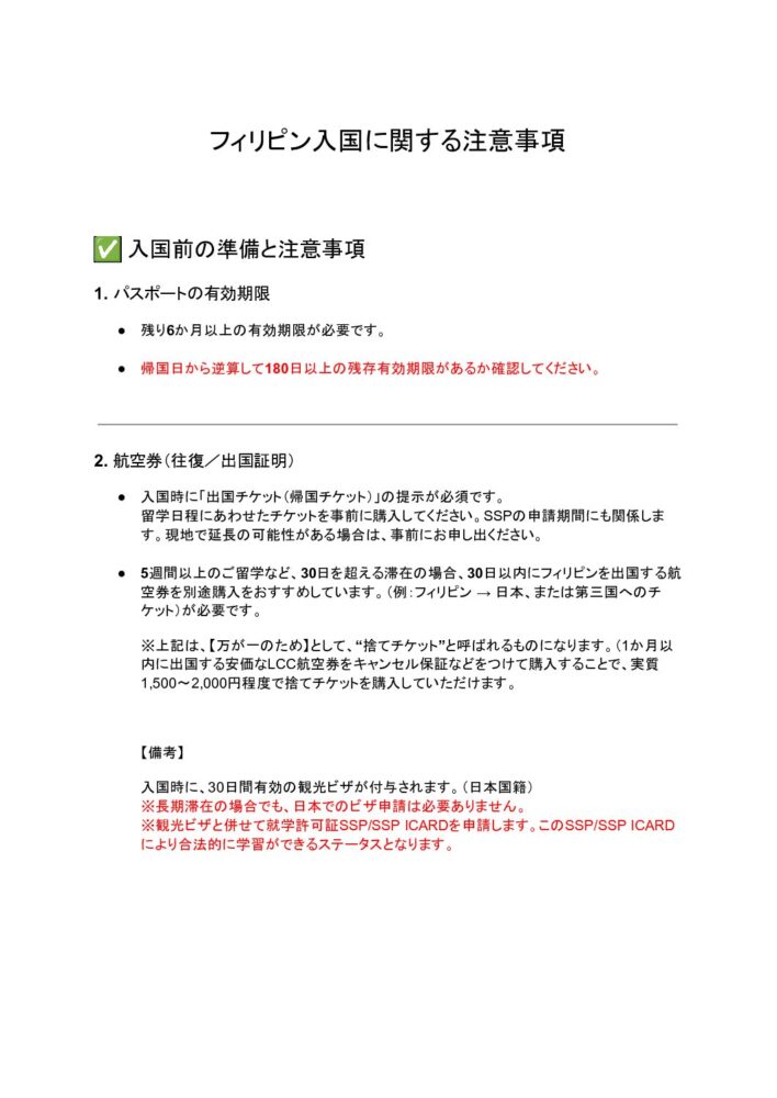 【3】01. フィリピン入国に関する注意事項